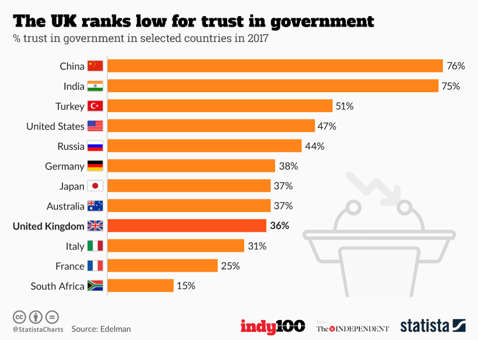 As the below chart by Statista shows, the UK ranked poorly for trust in government: