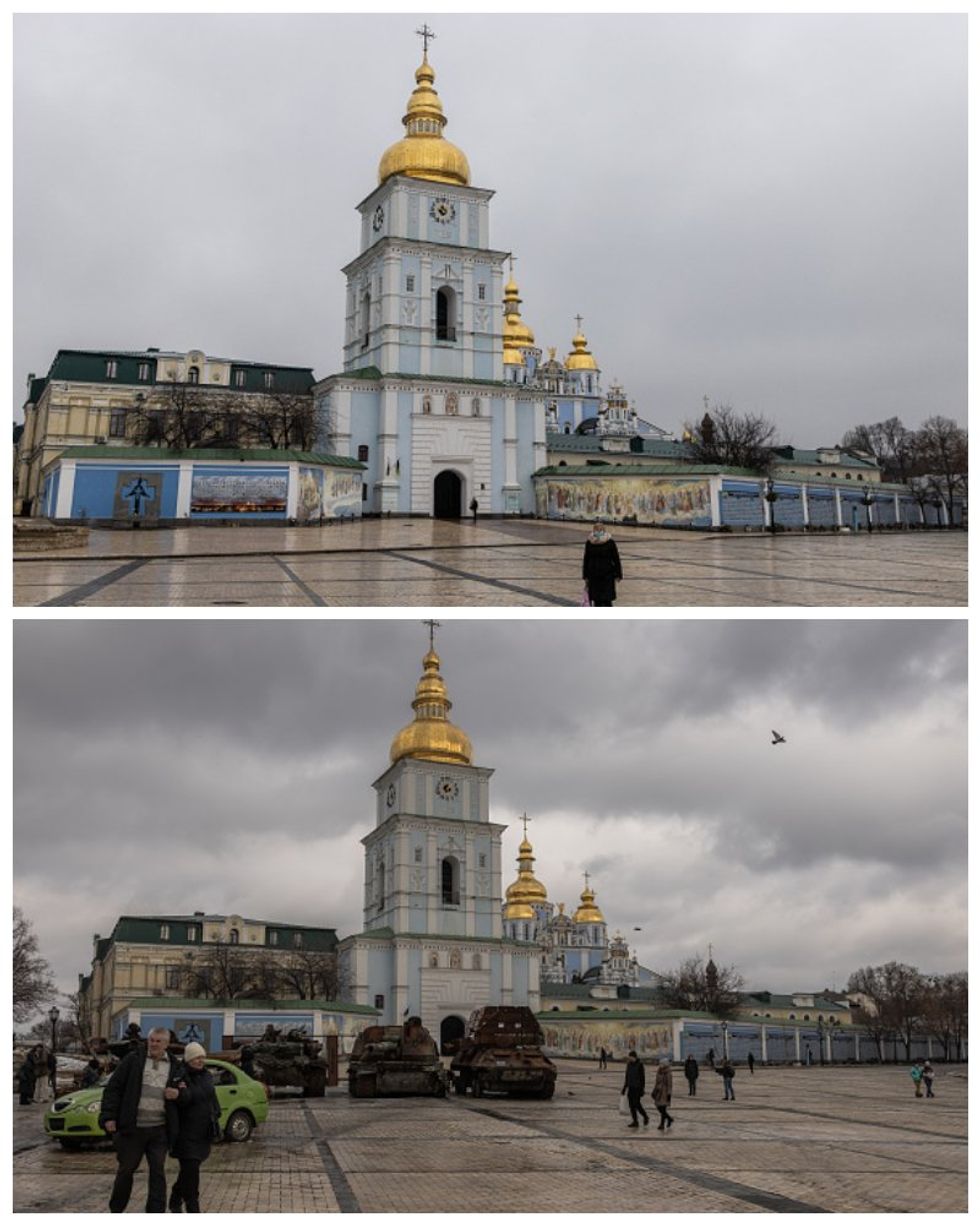 The below photo shows the famous golden-domed monastery located in St. Michael’s Square in Kyiv on 24, February 2022 - the day of the invasion.