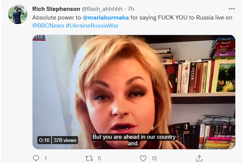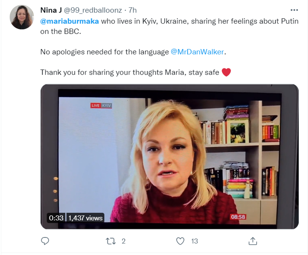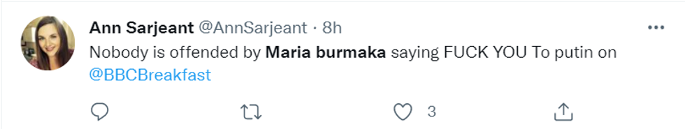Later on, the BBC Breakfast presenter addressed the matter on Twitter and wrote: "What a treat to talk to Maria Burmaka on #BBCBreakfast live from Kyiv this morning.