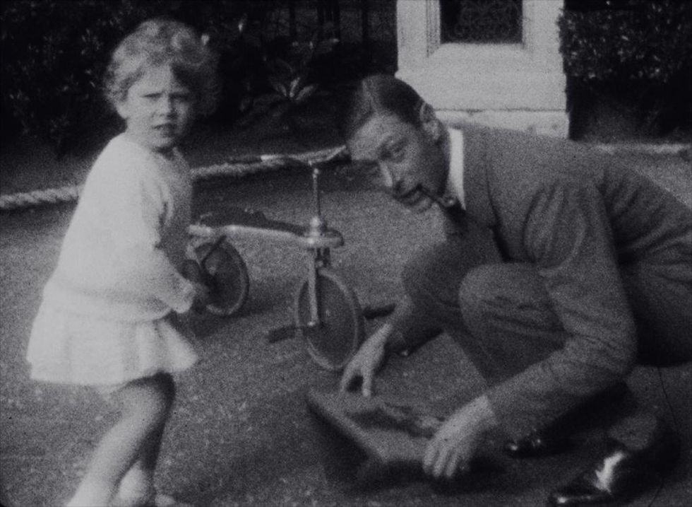 There are also glimpses of them crawling and playing in the garden as infants with their father King George VI.