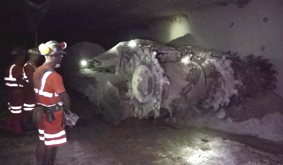 Grab from PA video of workers in Boulby Mine, in North Yorkshire, one of only two places in England where the salt used on the country’s roads is mined (Dave Higgens/PA)