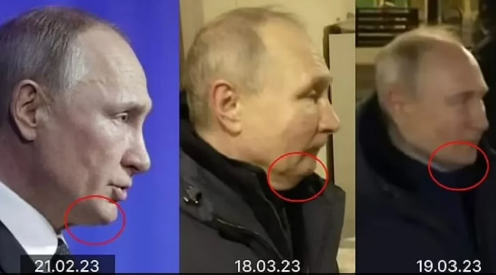 Earlier this week, Kyiv official Anton Gerashchenko shared three snaps of Putin's chin and questioned whether they all belonged to the Russian leader.