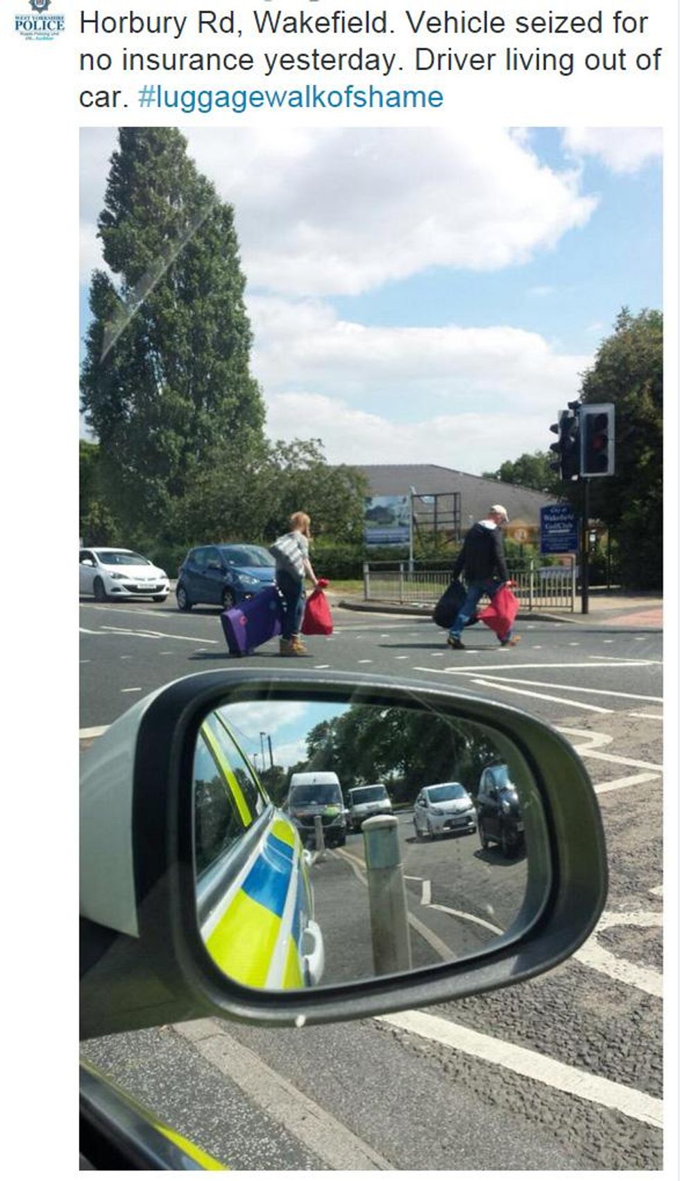 The image showed them carrying their possessions away from the vehicle, captioned with the hashtag #luggagewalkofshame.