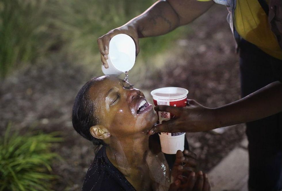 A woman gets help as she tries to recover from a tear gas attack by police.