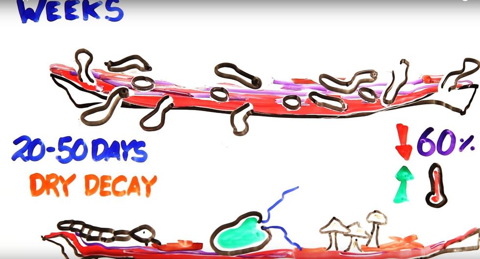 After a month and a half, beetles and fungi further consume the remains. This is called ‘dry decay’ which can take up to one year.