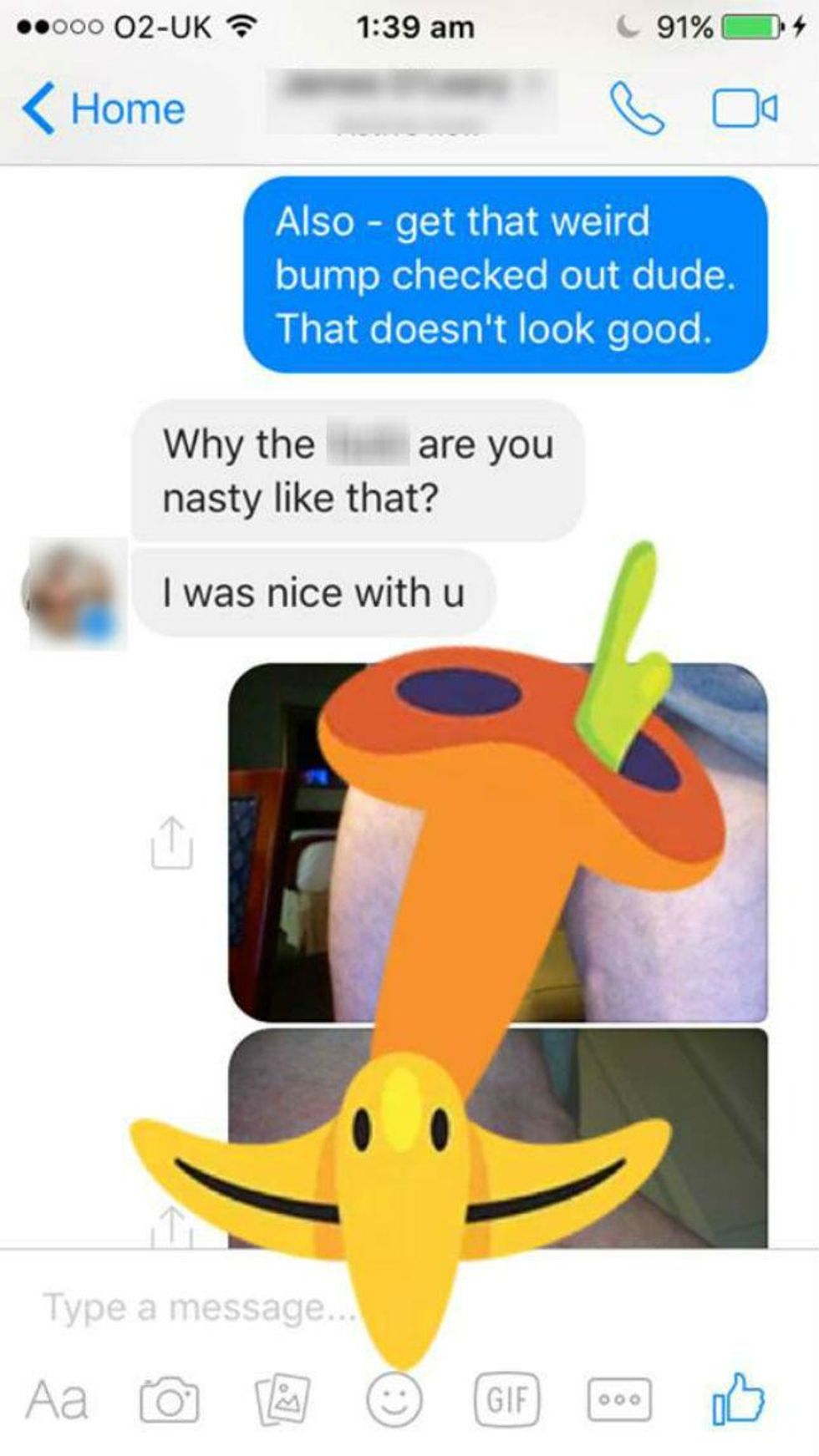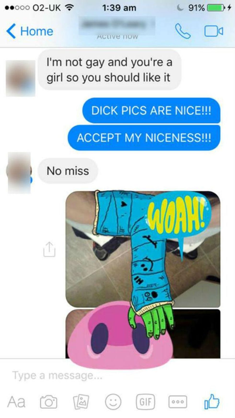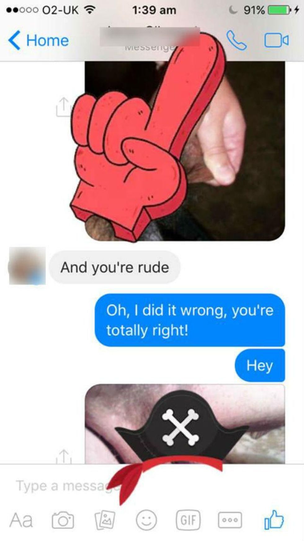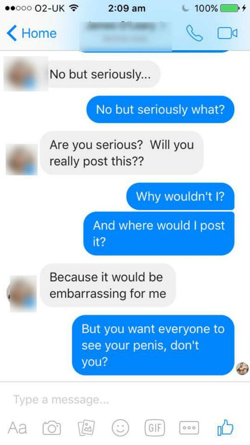 Mawdsley's response? Spam the man with dozens of other dick pics.