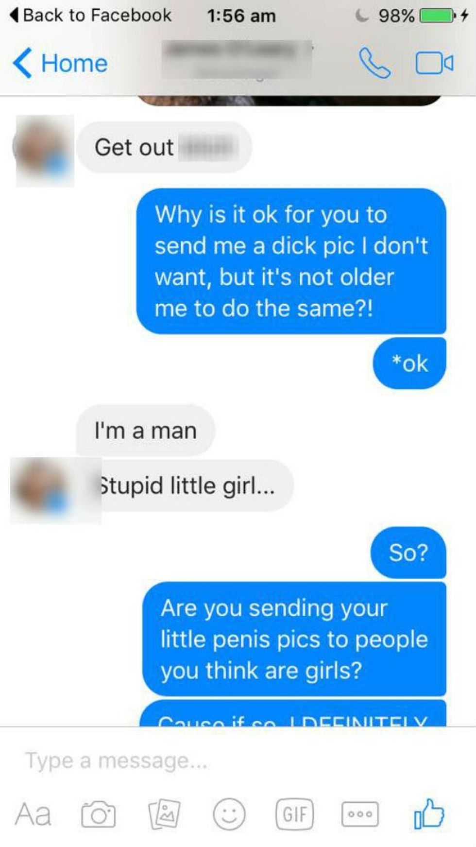 I received unsolicited dick pics when I was internet dating three years ago, and I just ignored it. But when this when came out of nowhere, it reminded me of when this happened in real life when I was 15, wearing my school uniform and in a public library. A man sat beside me and started masturbating.