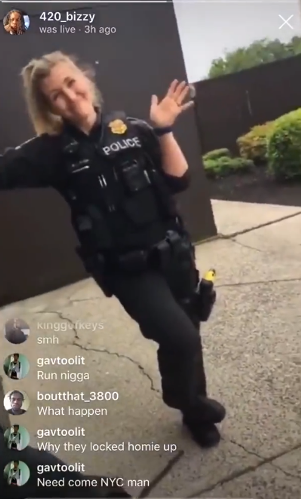 One of the black men used the racial slur, prompting the female police officer to say: “You want to get out of here fast, right?”