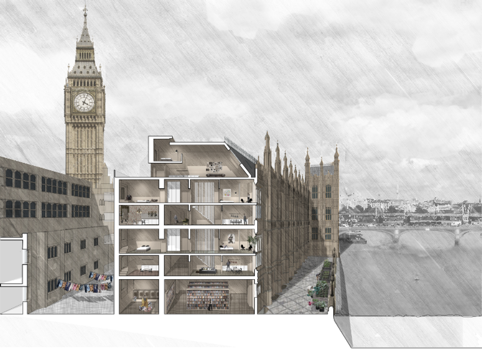 Architect and supporter Jay Morton, who specialises in social housing, said Parliament itself could be replaced by 364 affordable flats, mostly three-bed maisonettes for families and one- and two-bed flats, with communal areas such as swimming pools in the debating chambers.