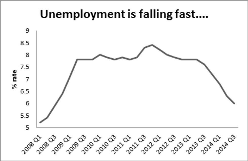 The most recent employment report from the ONS showed joblessness falling to just six per cent in the three months to October.