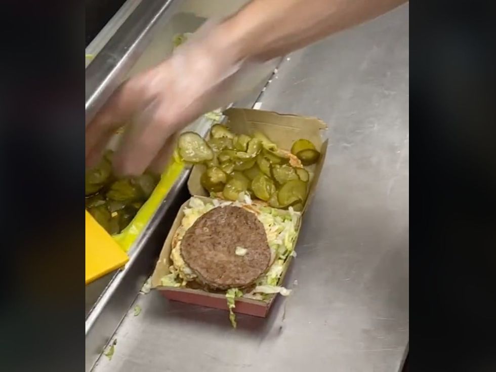 Yet, a McDonald’s employee, who has a whole TikTok page dedicated to their work at the restaurant, suggested they’d dished up a half-eaten patty, hidden inside a burger.
