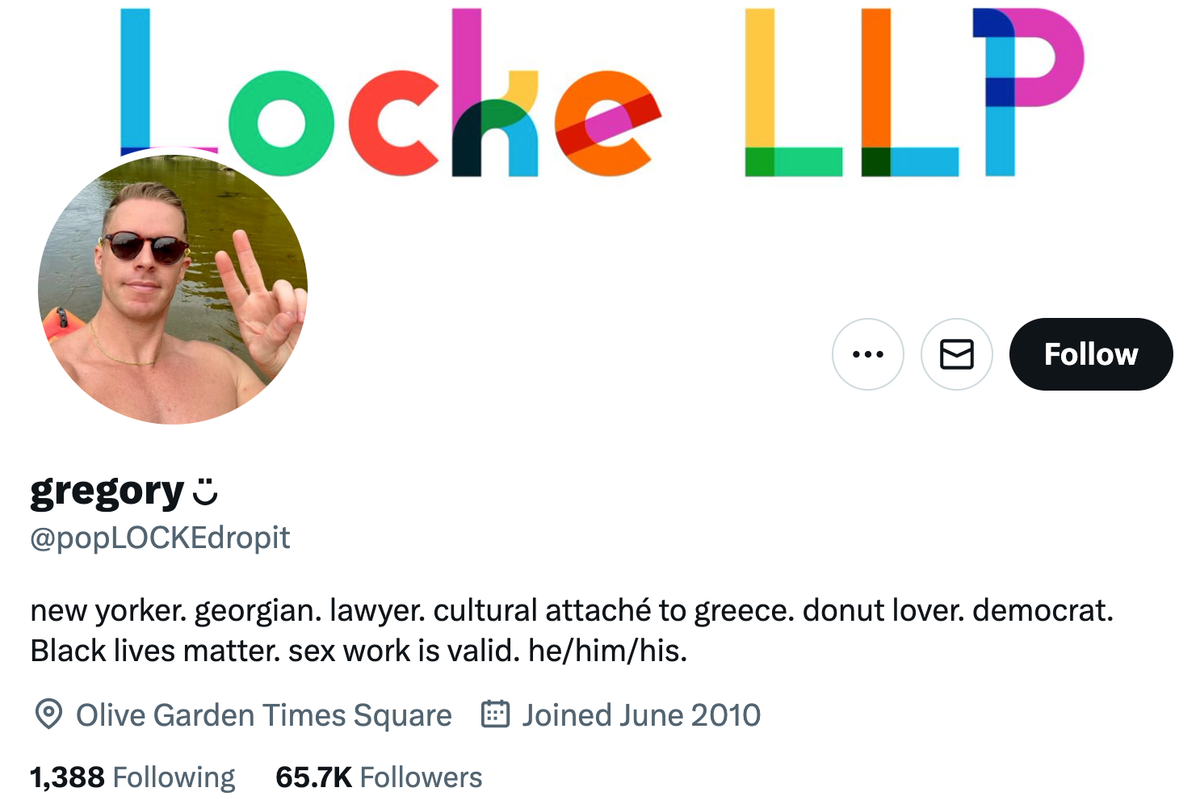 Gregory A. Locke, 33, has become an OnlyFans star, where his bio reads: “White collar professional by day… very unprofessional by night. [A]lways amateur, always raw, always slutty.”