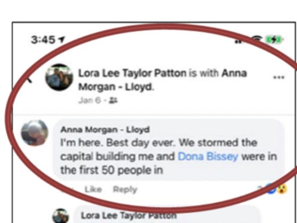 In yet another post, Lloyd wrote, “I’m here. Best day ever. We stormed the capitol building me and Donna Bissey were in the first 50 people in.” (Donna Bissey has since also been arrested.)