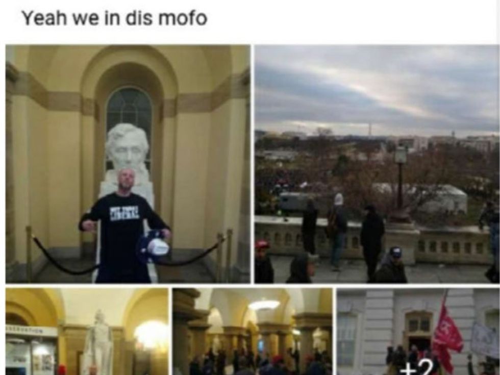 Jeremy Vorous of Pennsylvania live-updated his experience at the Capitol on Facebook, as well. First, he posted a series of images posing inside and outside the building, captioned, “Yeah we in dis mofo [sic].”