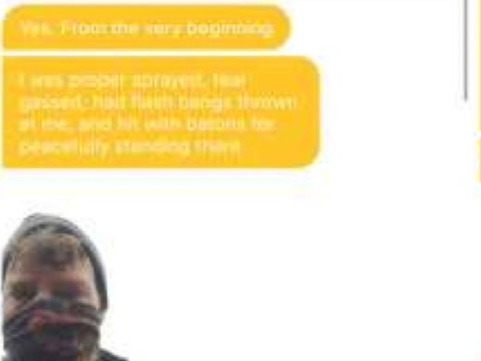 Andrew Taake of Texas outed himself via dating app Bumble. On Jan. 9, 2021, Taake’s match asked: “Yeah the whole thing was wild! Were you near all the action?” Taake then responded, “Yes. From the very beginning. I was pepper sprayed.” He then sent a photo of himself, allegedly shortly after having been sprayed, and admitted to having been inside the building for approximately 30 minutes.