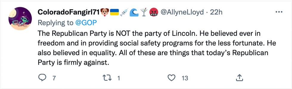 But Lincoln's ideology didn't stop the official GOP Twitter account from boasting about the 16th President who abolished slavery, modernized the US economy, and led the country through the Civil War.