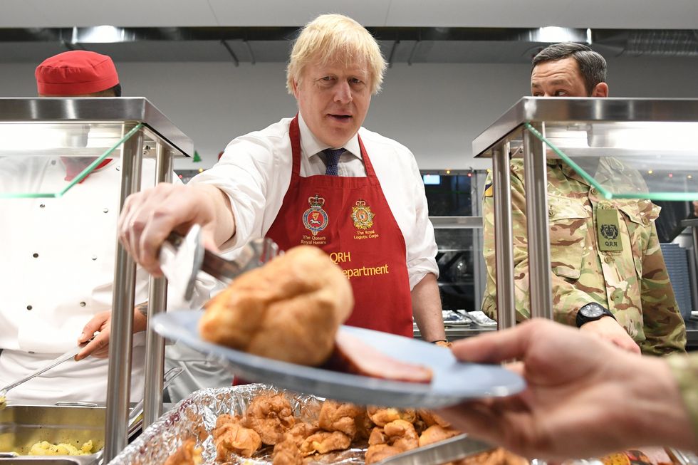 In 2019 the prime minister donned an apron as he served Christmas lunch to British troops in Estonia.