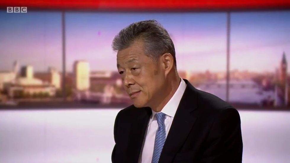 play icon Chinese ambassador confronted with footage appearing to show blindfolded Uighur Muslims being led onto train