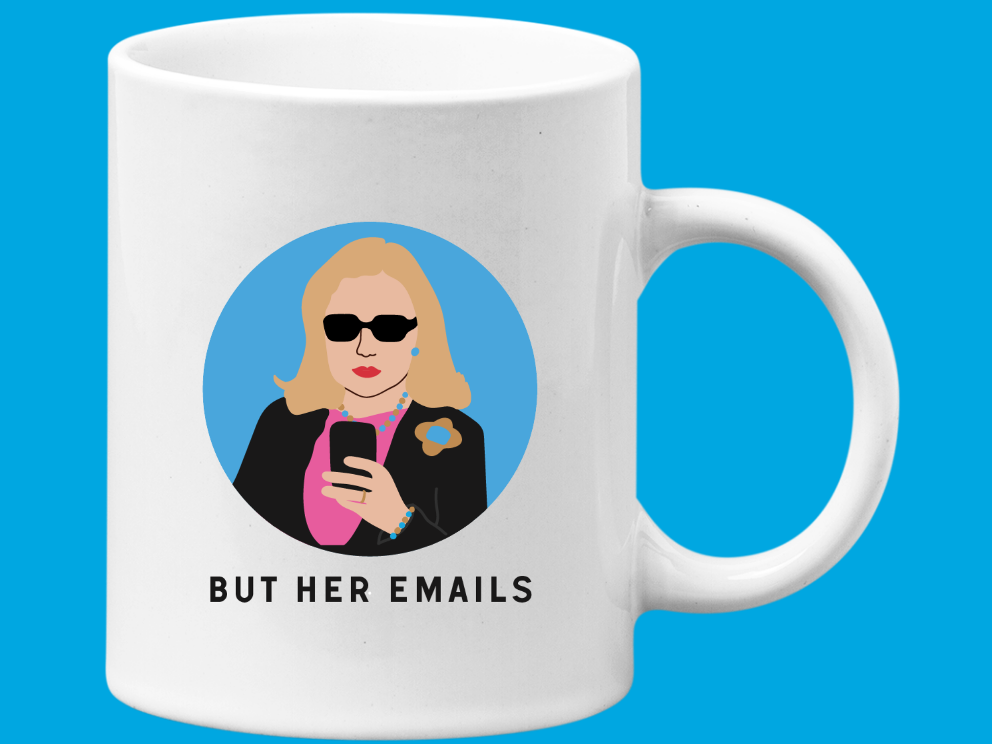Clinton's website is also selling pins and masks with the "but her emails" slogan.