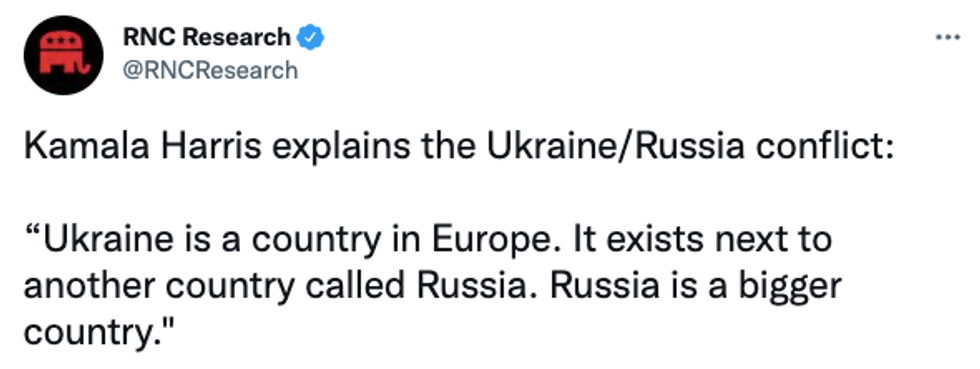During an appearance on radio show called Morning Hustle, the vice president was asked to explain Russia's invasion of Ukraine in "layman’s terms for people who don’t understand what’s going on and how can this directly affect the people of the United States?"