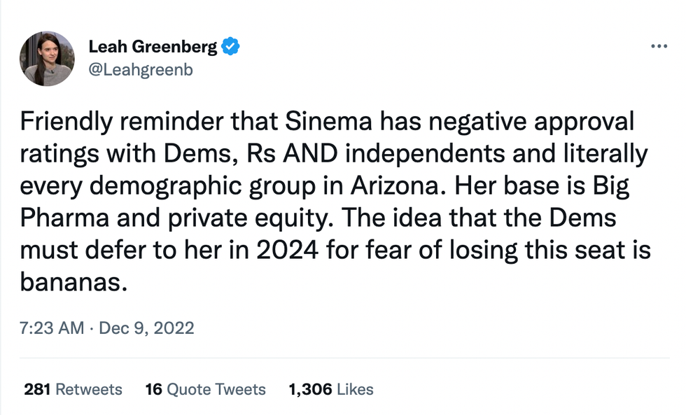 In the past, Sinema has come under fire for voting in opposition to Democratic-sponsored legislation. She has been likened to fellow Senator Joe Manchin who is also considered a moderate-conservative Democrat.