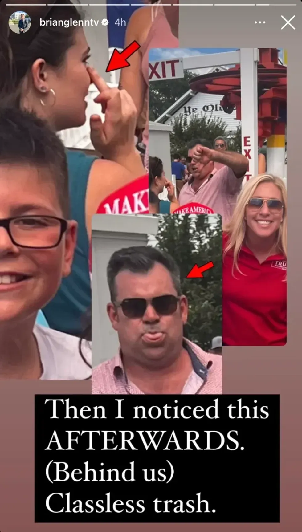 Glenn zoomed in on the photo-bombers on his Instagram story, writing “then I noticed this AFTERWARDS.” He went on to call the pair “classless trash.”