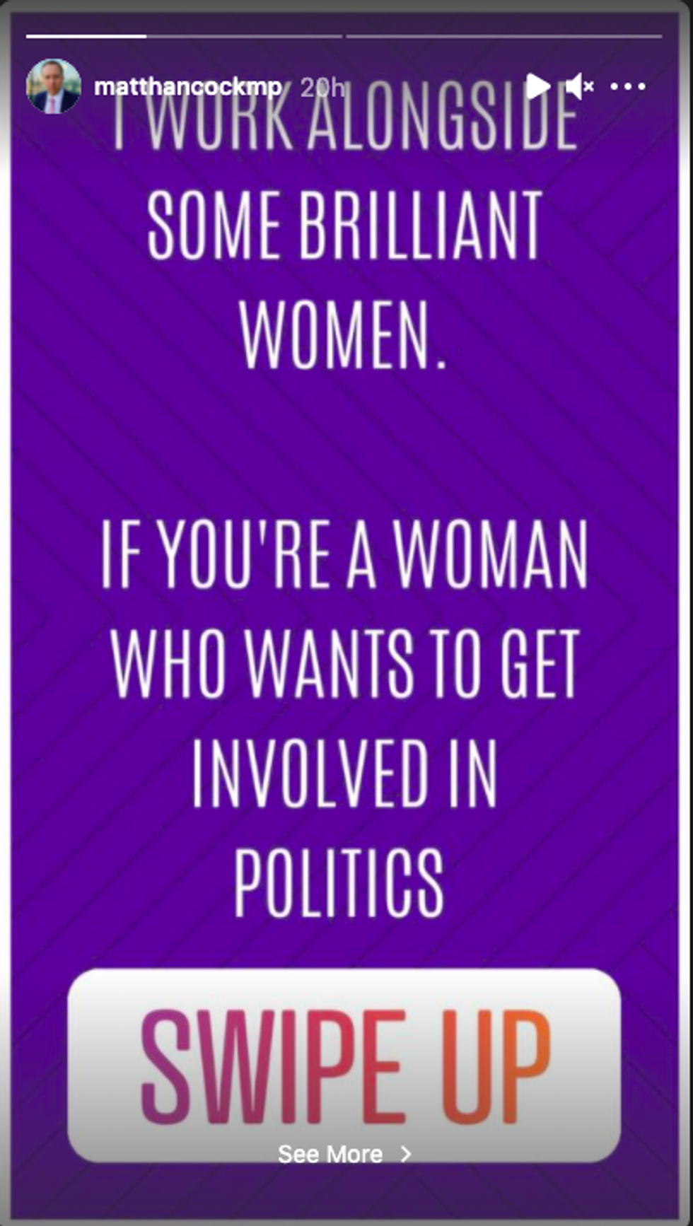 Hours before The Sun newspaper broke the story of Hancock apparently kissing Coladangelo in Whitehall, the minister shared a post on his Instagram Stories advertising for more women to get involved in the Conservative party.