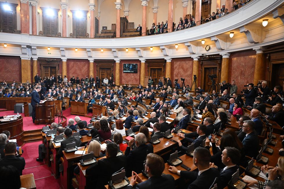 MPs were gathered in parliament to discuss the country’s relationship with Kosovo and the pursuit of EU membership when the incident occurred.