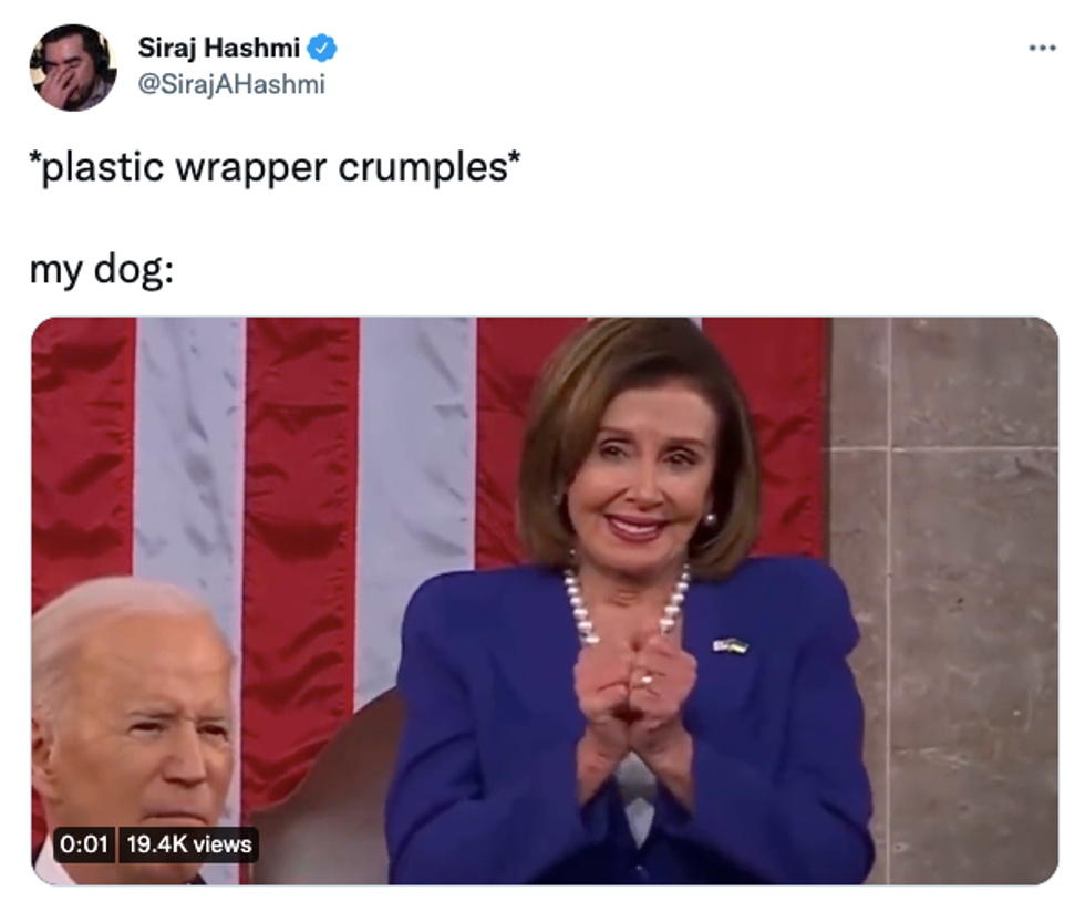 Siraj Hashmi wrote: “*plastic wrapper crumples* my dog:”