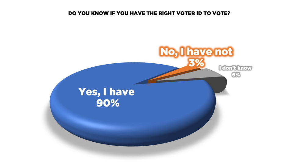 People were also asked if they had the right voter ID to vote in the election – 90 per cent said yes, while three per cent said they did not and six per cent said they did not know.