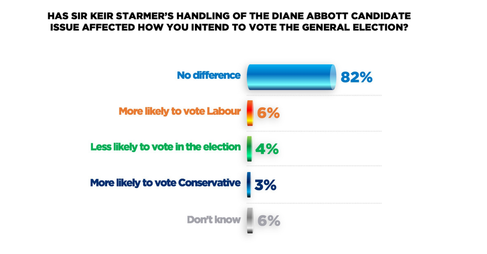 The polling data also delved into Diane Abbott and the situation surrounding the MP’s role for Labour in the upcoming election.