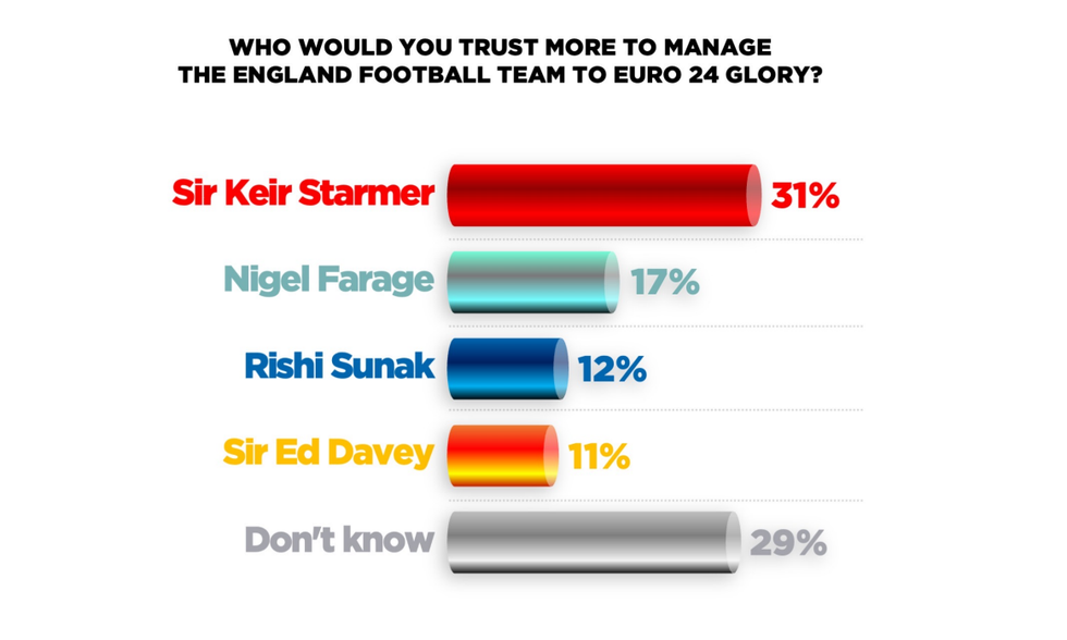 With the Euros beginning this week, people involved in the poll were also asked who they would trust more to manage the England football team to Euro 24 glory.