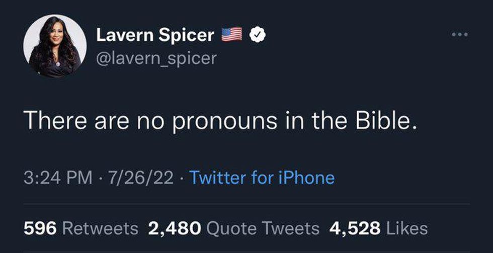 In a tweet which now appears to have been deleted, Spicer incorrectly claimed that the bible contained no pronouns.