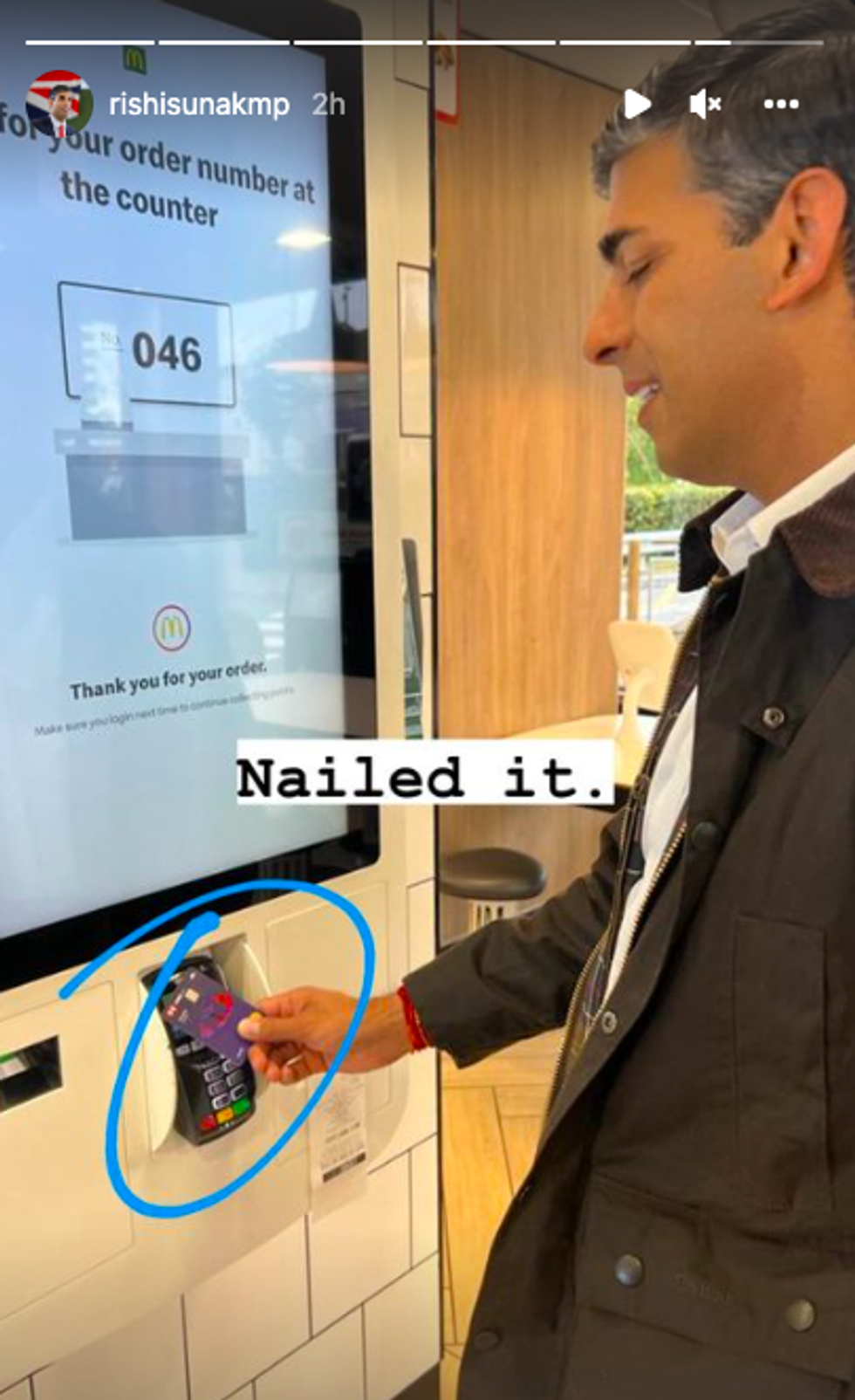 The MP posted a picture of himself using a contactless machine in a McDonald's on his Instagram stories, adding the caption: “Nailed it.”