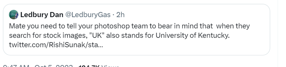 “See here for the original photo of the PM with a British lad who happens to be wearing a Kentucky sweatshirt… A modern Thick of It episode!”