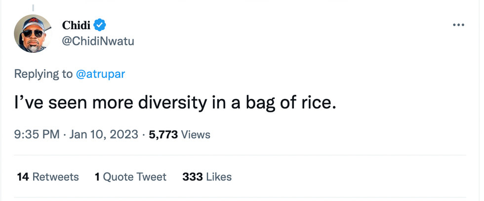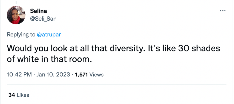 \u201cHannity claims that a room full of white people is an example of "more diversity in the Republican Party"\u201d— Aaron Rupar (@Aaron Rupar) 1673402903