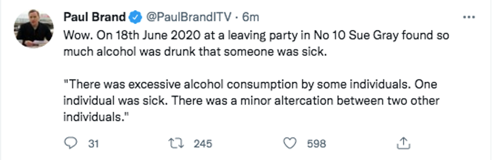 The Cabinet Office confirmed that Downing Street received the report from the senior civil servant earlier today, before it was made public before PM Boris Johnson addressed MPs in the Commons.
