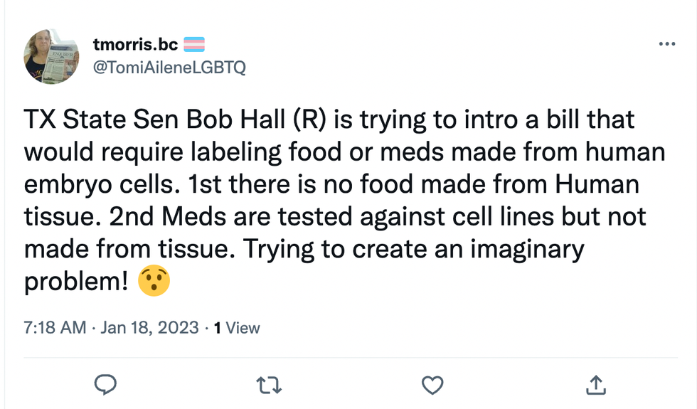 A Texas Republican proposed legislation that requires food made with “human fetal tissue” to be labeled as such - the only problem is there is no such food to make those changes to.