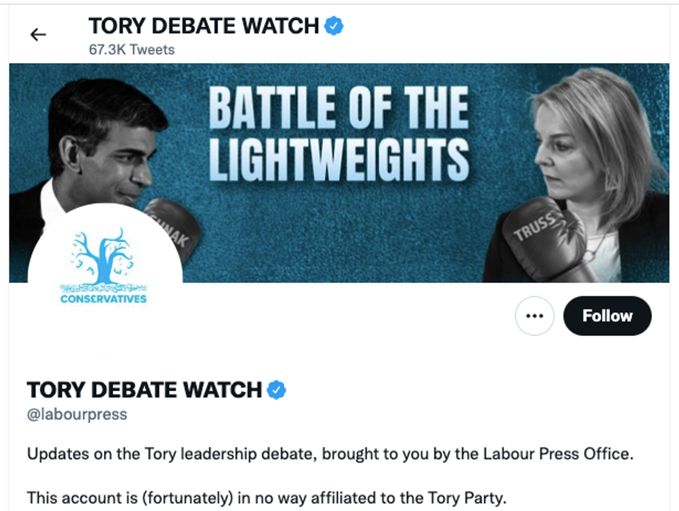 The Labour Party has rolled back the years and taken a leaf from the Tory Party's 2019 general election playbook by rebranding their press account to 'TORY DEBATE WATCH.'