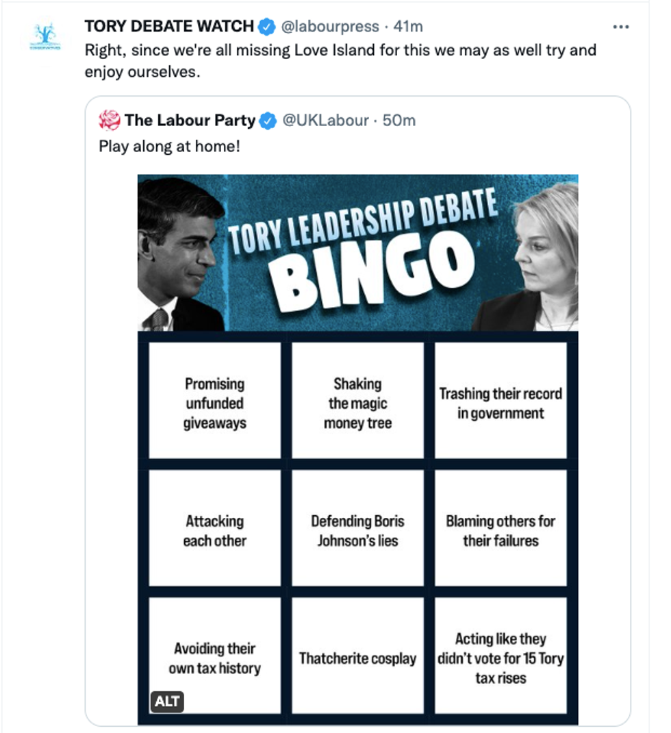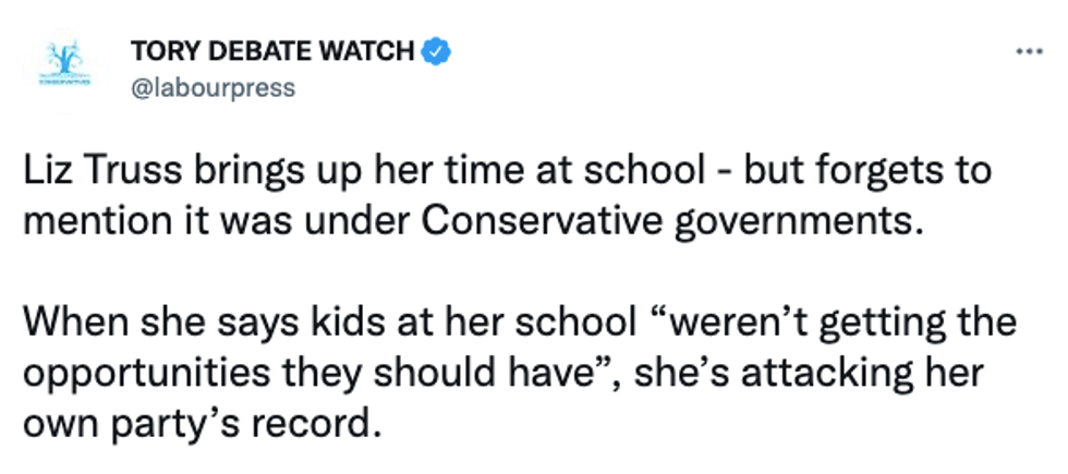 Well, Labour took a long time to get their own back but during the BBC debate between Liz Truss and Rishi Sunak the @labourpress account has been live fact-checking the statements made by the two candidates in line to replace Boris Johnson as prime minister in September.