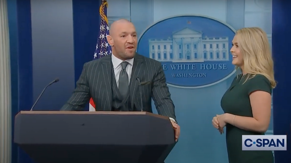 The 36-year-old mixed martial arts fighter visited the White House briefing room during his St. Patrick’s Day visit to Washington DC.