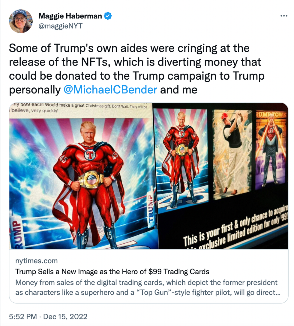 However, it turned out to be a collection of Trump NFT digital trading cards.