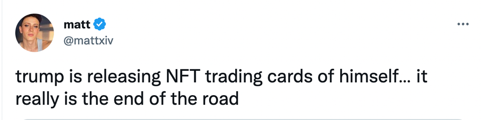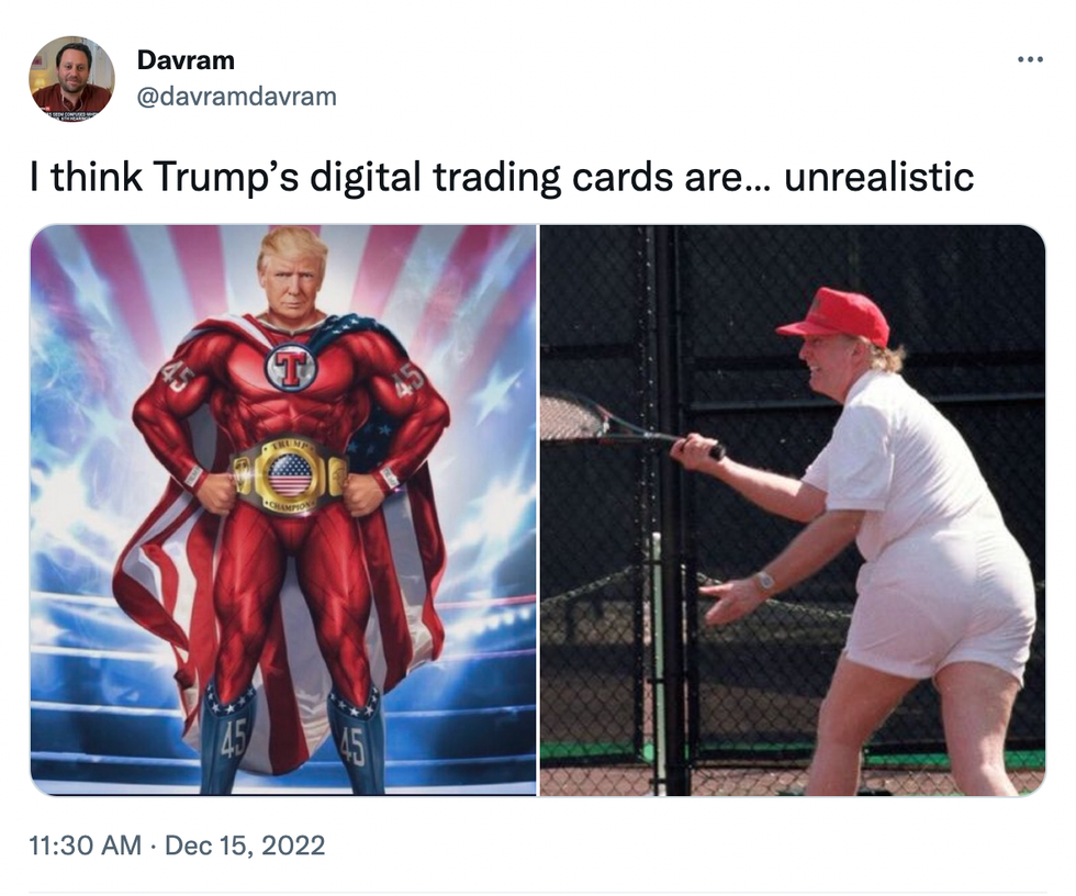 But on Thursday, Trump, 76, revealed his "superhero" announcement was digital trading cards.