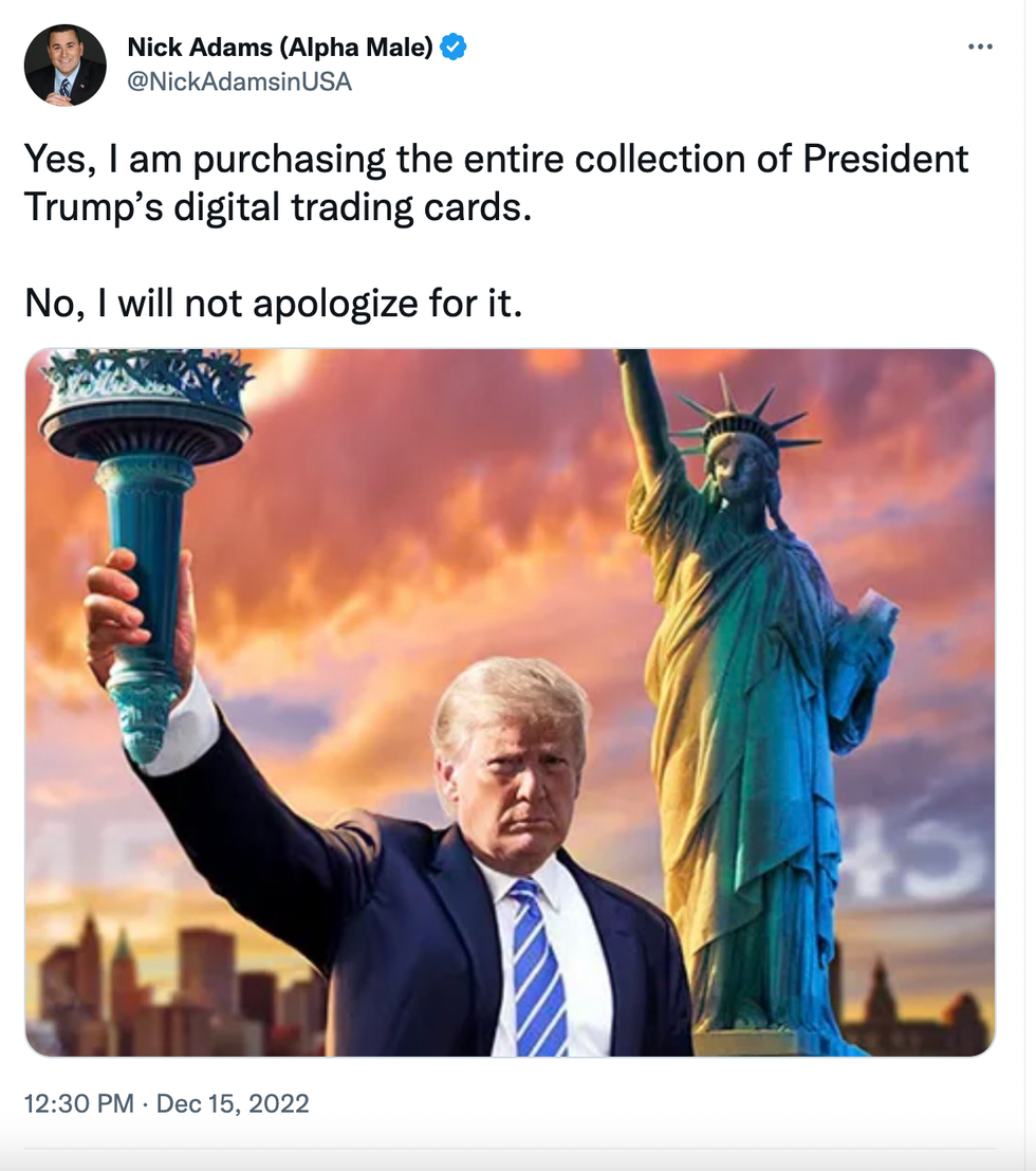 Trump's digital trading cards are part of an NFT collection, each costing $99.