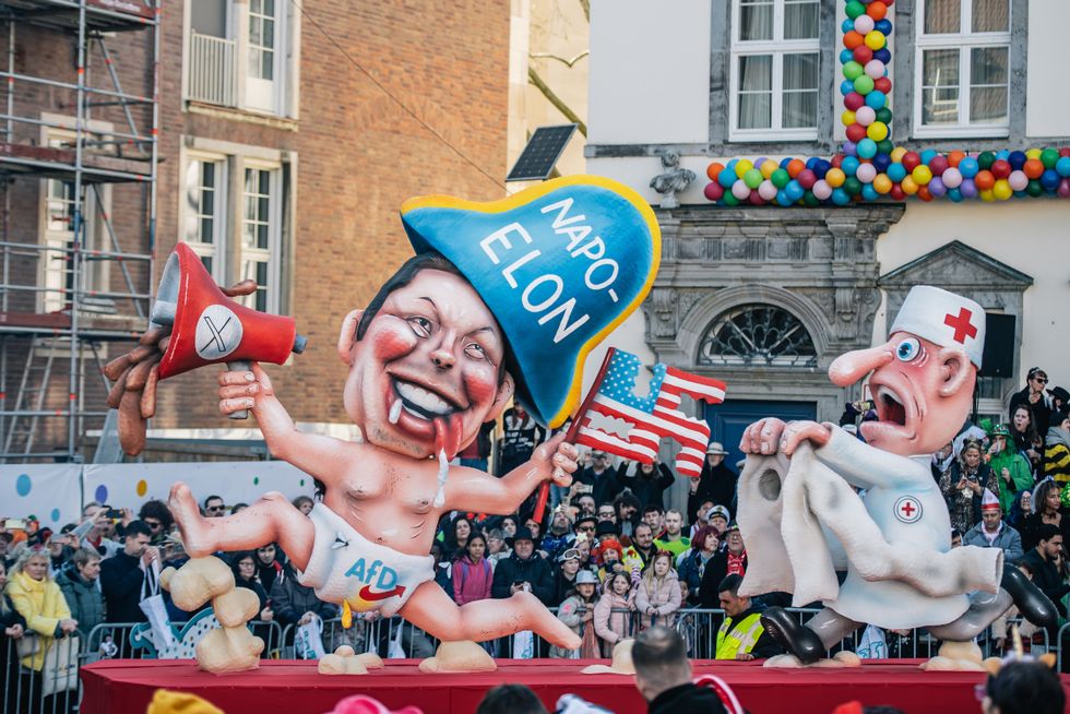 Residents of Düsseldorf in Germany made their thoughts on US president Trump and his sidekick Musk apparent with a series of floats depicting the two men as caricatures of their most controversial moments.