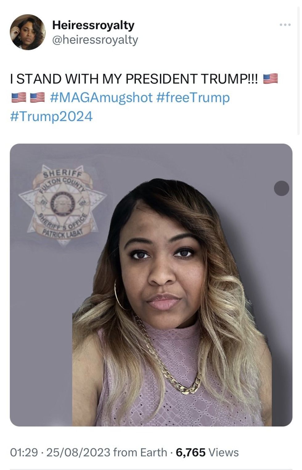 The former president’s fans have photoshopped themselves to have a mugshot similar to Trump’s, with the Fulton County Jail badge in the top left corner.