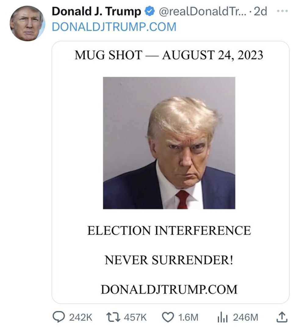 The mugshot even saw Trump’s own return to the platform, after he was banned in 2021. The former president posted a photo of his mugshot, writing “ELECTION INTERFERENCE NEVER SURRENDER!” With a link to his website where people can donate to his campaign for reelection in 2024.
