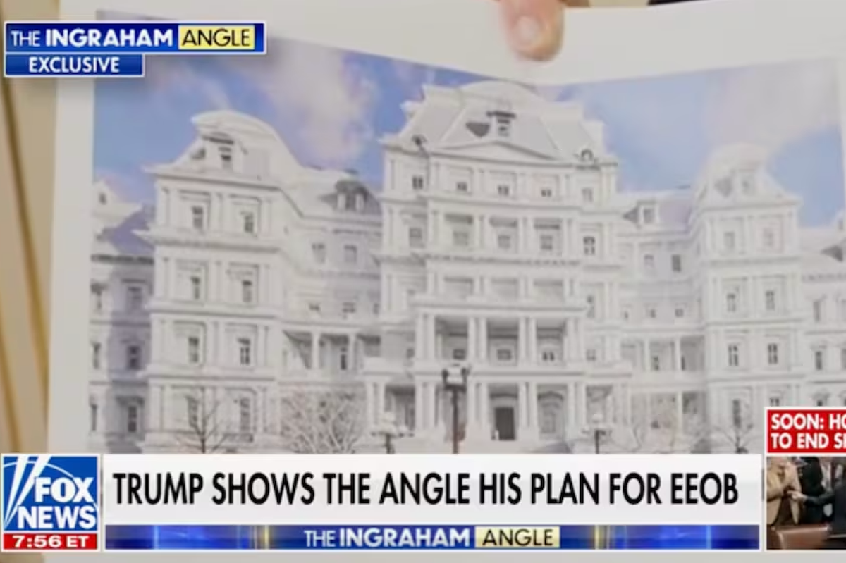 Trump showed Ingraham a rendering of what the building will look like with a new lick of paint.
