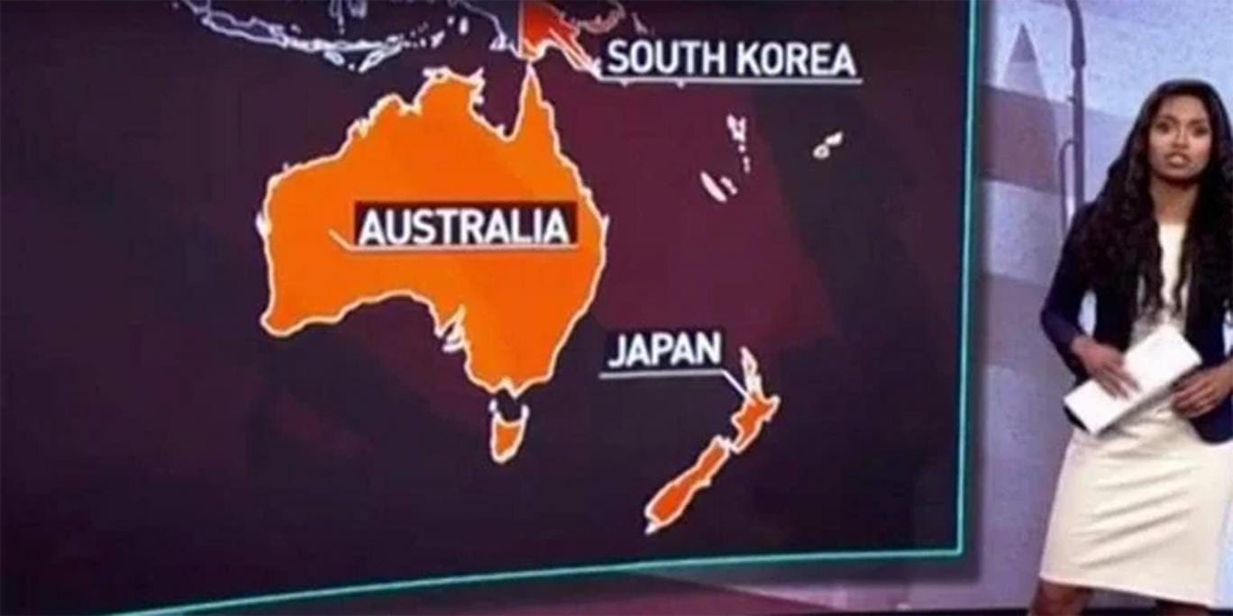 News channel Russia Today labelled New Zealand as Japan and Papua New Guinea as South Korea in an embarrassing double gaff during a segment on missile bases in the Sourth Hemisphere. Presenter Ashlee Banks said “The US is looking to place missiles in Japan, South Korea and Australia,” as the map behind her showed almost a totally different area of the world.