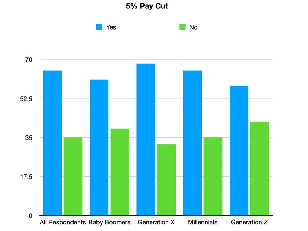 Out of all groups surveyed, Generation X and Millennials were most likely to accept a pay cut in return for perpetual remote work, while Gen Z was most likely to take on an extra 10 hours of work.